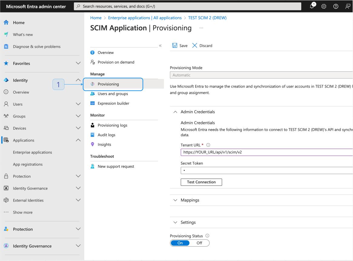 - Select your application and go to the Provisioning tab.