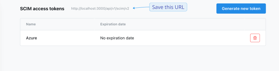 - Note: Now you will also be able to see your SCIM URL at the top of the page. You will need this when connecting an external SCIM service, such as Okta or Azure.